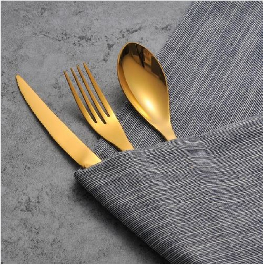 Stainless Steel Noble Quality Cutlery Sets Gold Color Tableware Dinnerware Western Fork Knife