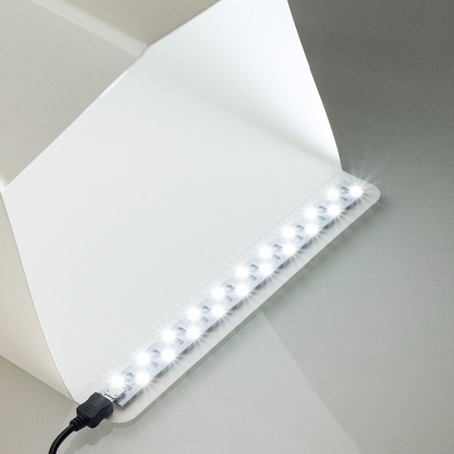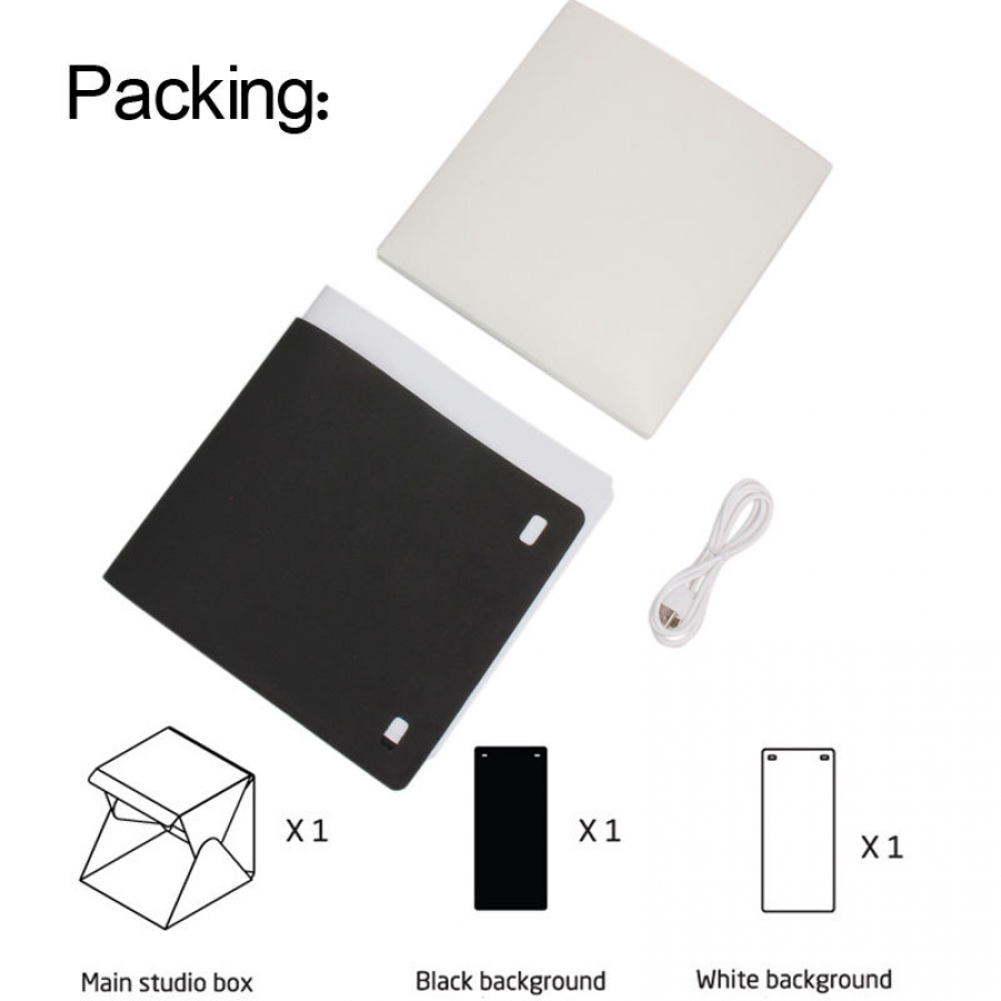 Brand Name: Lerbyee Weight: 0.1 Model Number: WP-YPO1 Material: High-quality PVC, EVA Size (WxHxD): 22.6*2023cm Package: No Type: Mini Folding Portable Lightbox Studio Color: White Type2: Camera Photo Stutio Type3: with LED light micro USB cable
