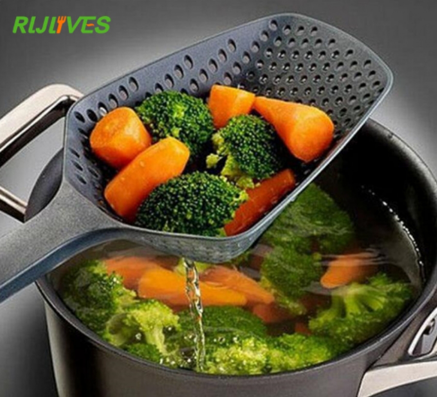 RLJLIVES 1 Pc Black Cooking Shovels Vegetable Strainer Scoop Nylon Spoon Large Colander Soup Filter Kitchen Tools