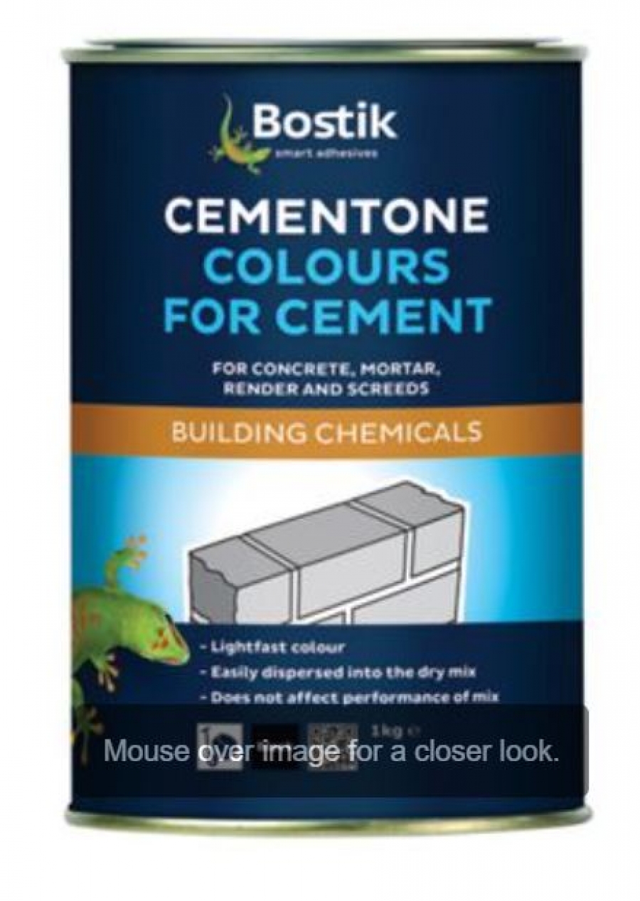 Size: 1 kg Colour: Black Type: Cement Dyes Brand Name: Bostik Features & benefits Permanently colours concrete, mortar, render or screed Does not effect the performance or durability of any mortar mix For general use use 1.2kg to 25kg cement